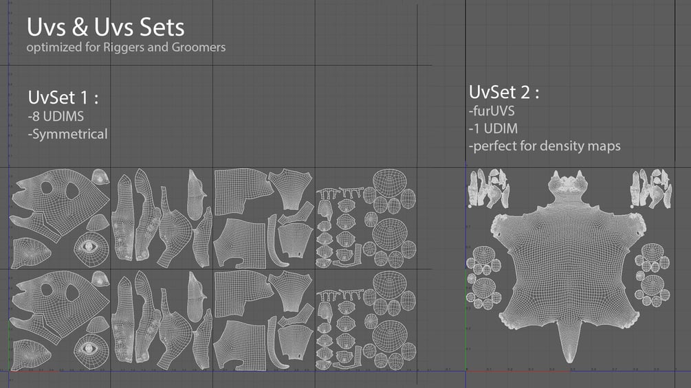 ⦁ UvsSet1 with 8 UDIMS symmetrical